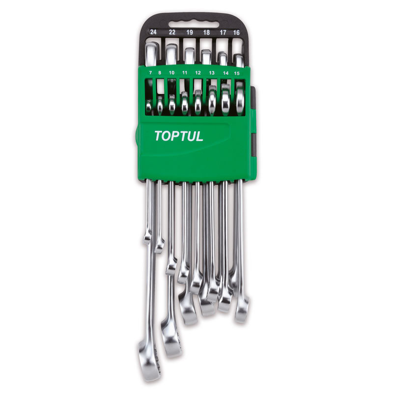 14 Pcs AAEB Combination Wrench SetSatin Chrome / Composite Holder